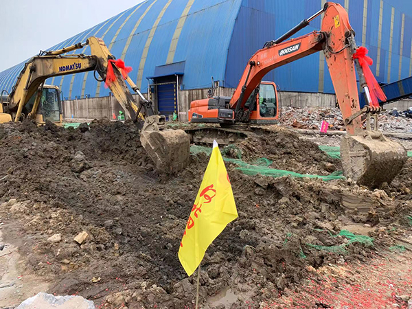 項目班子廣泛考察當地建材市場(chǎng),了解更多周轉工具、商品混凝土供應商的資質(zhì)和信息,同時(shí)加強與分公司主管科室的溝通,及時(shí)進(jìn)行價(jià)格、供應能力等方面的比對,盡快確定了供應商。項目管理人員“兵分兩路”,一路人員負責臨時(shí)設施建設,因項目位于原廠(chǎng)區內,場(chǎng)地狹小、施工噪音較大,增加了臨建選址的難度,經(jīng)過(guò)與業(yè)主多次溝通,在充分考慮便于日常管理和現場(chǎng)施工的條件下,確定了臨建搭設方案;另一路人員負責現場(chǎng)混凝土路面的切割破碎,為場(chǎng)地平整和定位放線(xiàn)做準備。